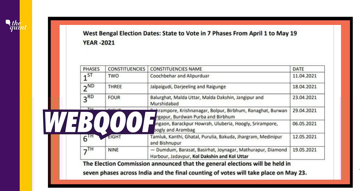 Fact Check On West Bengal Elections 2021 2019 Lok Sabha Schedule Shared 2021 West Bengal Election Dates