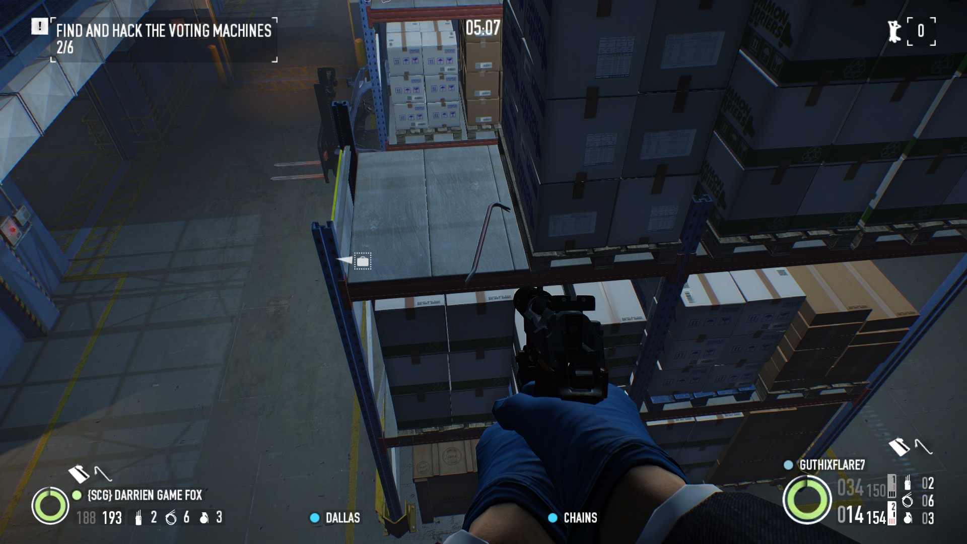 The crew must place a GPS tracker on the truck moving the ballot machines in order to hack the ballot machines later on. Election Day ECM Rush with Crowbar Keycard locations Much like Shadow Raid Election Day can be finished quite fast by employing a simple ECM chaining technique. To 730 pm.